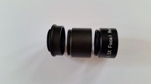 Revolution Imager Reducer and Two Part Adapter, designed to allow optimal field of view and image illumination with telescopes of wide ranging F ratios. A useful accessory pack to the Revolution Imager R2 “Camera and Controller option” as well as other AstroVideo / EEA cameras.