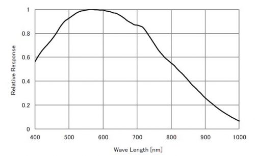 - Spectral Response: QE max at 620nM (~65%), 35% at 400nM and 770nM.