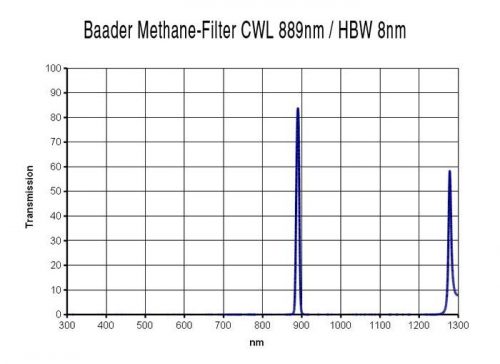 The Methane filter is a specialized filter, that passes a narrow passband 8nm wide in the near infrared portion of the spectrum, centered at 889nm.